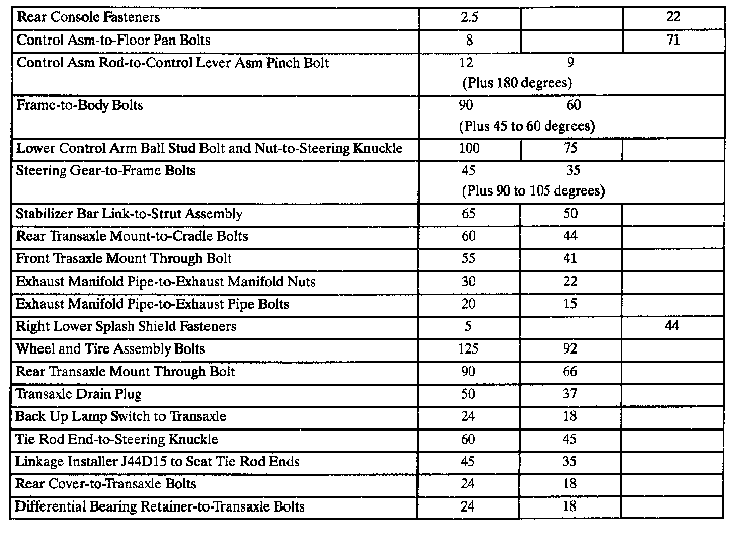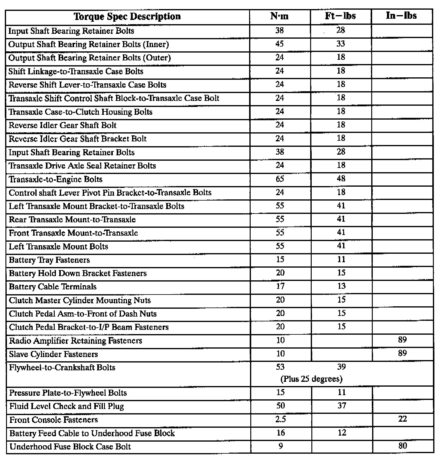 Fastener Tightening Specifications