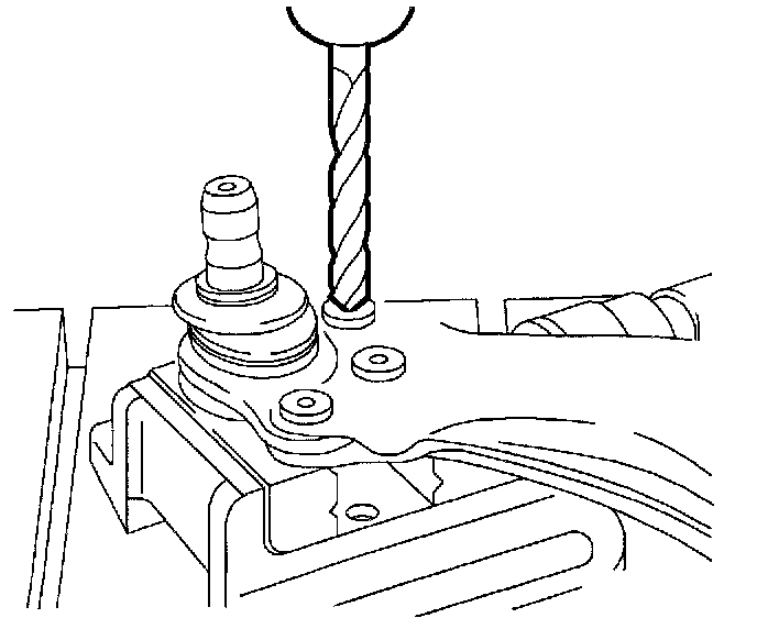 3. Drill out rivets retaining the ball stud to the control arm using a 13 mm (1/2 inch) drill bit.
