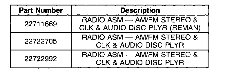 Changes to the AM/FM Stereo and Audio Disc Player Radio (RPO U1C)