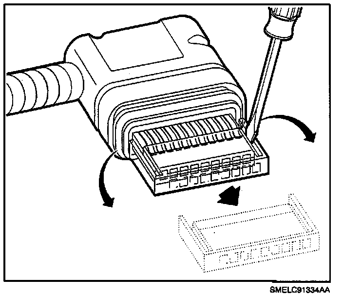 7. Remove SDM terminal retainer from instrument panel harness connector with pocket screwdriver.