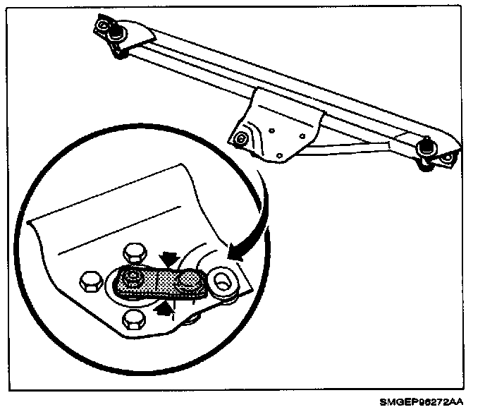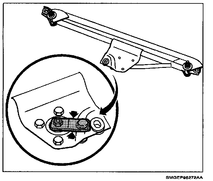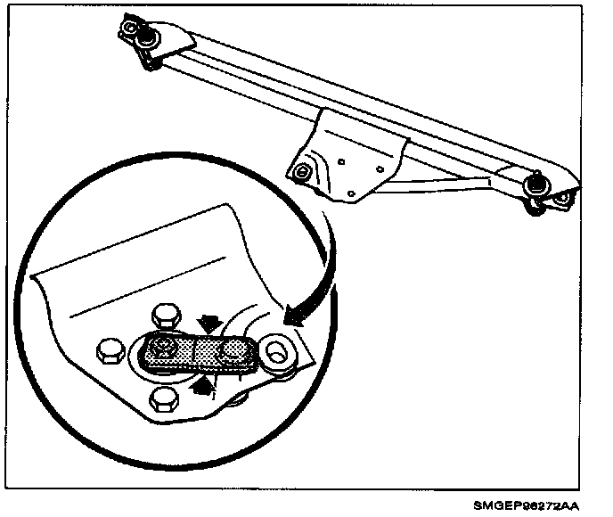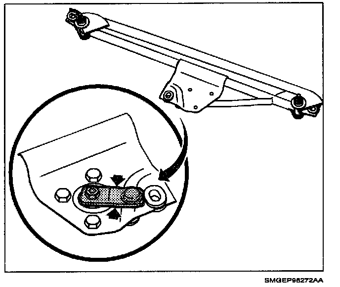 6. Install wiper motor crank arm, aligning it in between the alignment marks on the linkage mounting plate.