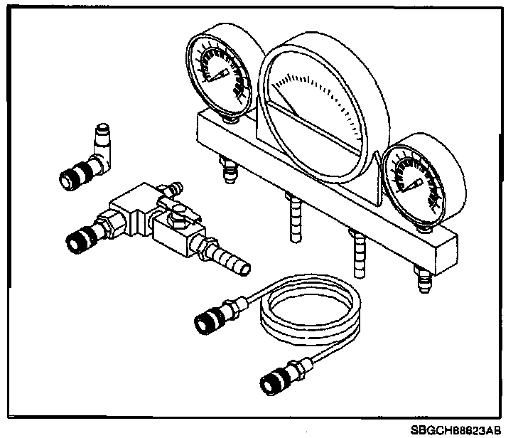 2. Install gauge bar set SA9127E to fuel system pressure test port.