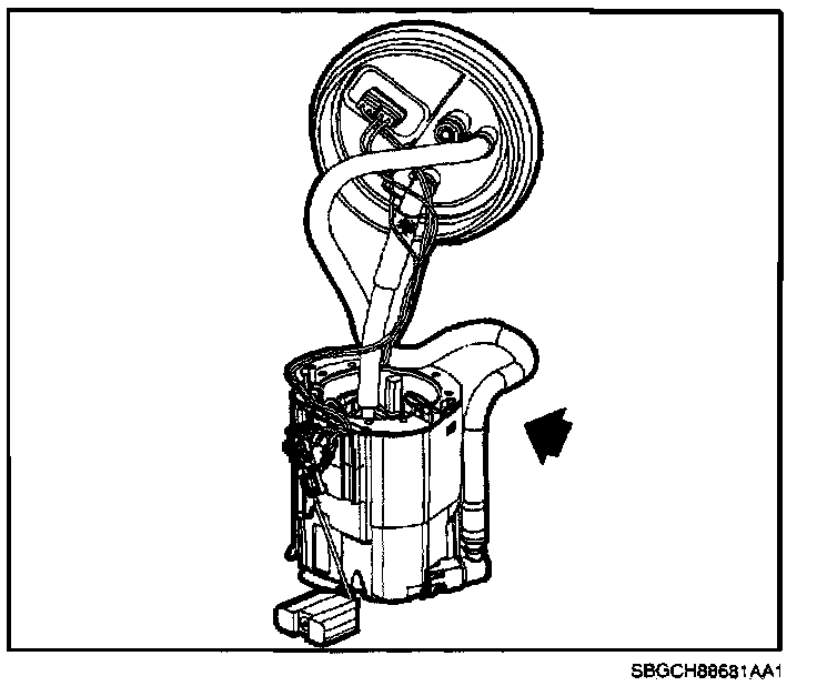 5. Remove fuel pump module. (Refer to the "Fuel Pump Module" removal procedure in the Fuel System section of the appropriate 2000 L-Series engine service manual).