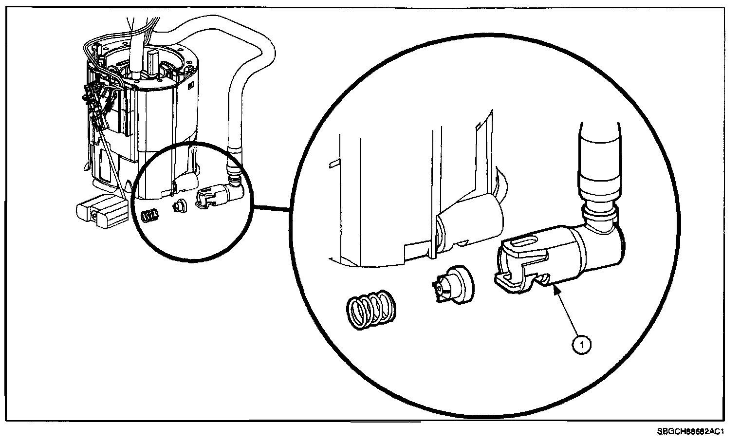 ^ If jet valve fitting is properly seated and engaged on fuel pump housing, replace fuel pump module (P/N 21018807).