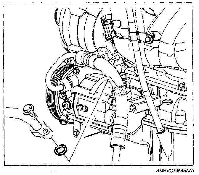 14. Install new seal washer and new fastener to discharge (outlet) line.