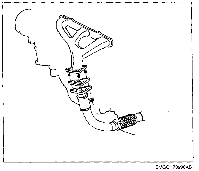 21. Tighten exhaust manifold pipe to exhaust manifold nuts.