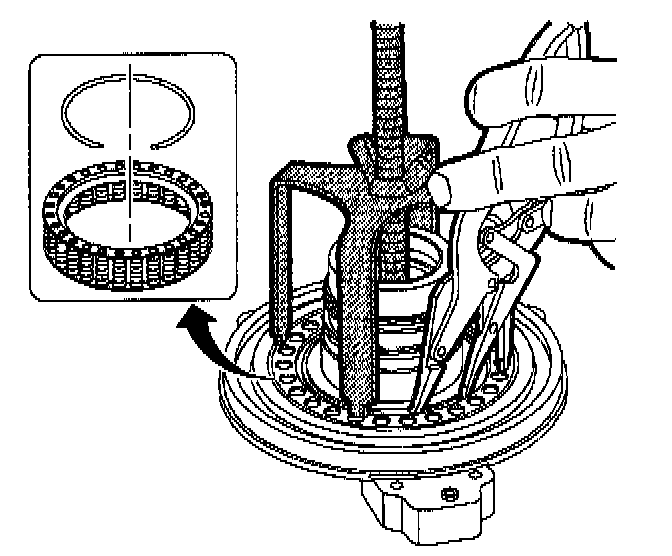 4. Compress 2nd clutch spring assembly. Use J41232 and J23327.