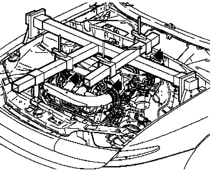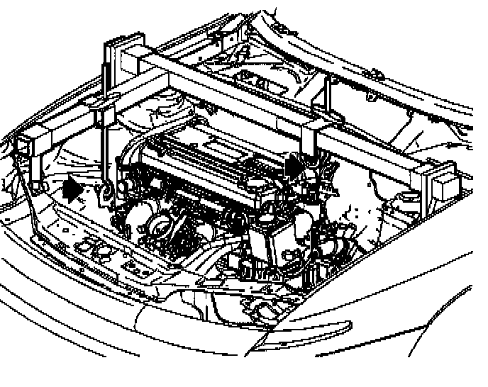 23. Install engine support fixture SA105E with engine support fixture adapter J43405 as shown (V6 shown).