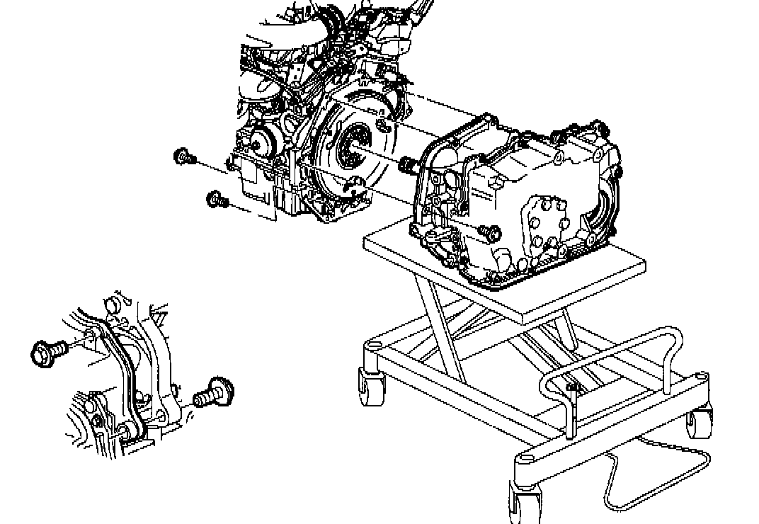 29. Use torque converter bolt socket J44014 to remove flex plate to torque converter bolts through starter opening in engine block. Torx(TM) socket J42098 can be used to turn the V6 crankshaft.