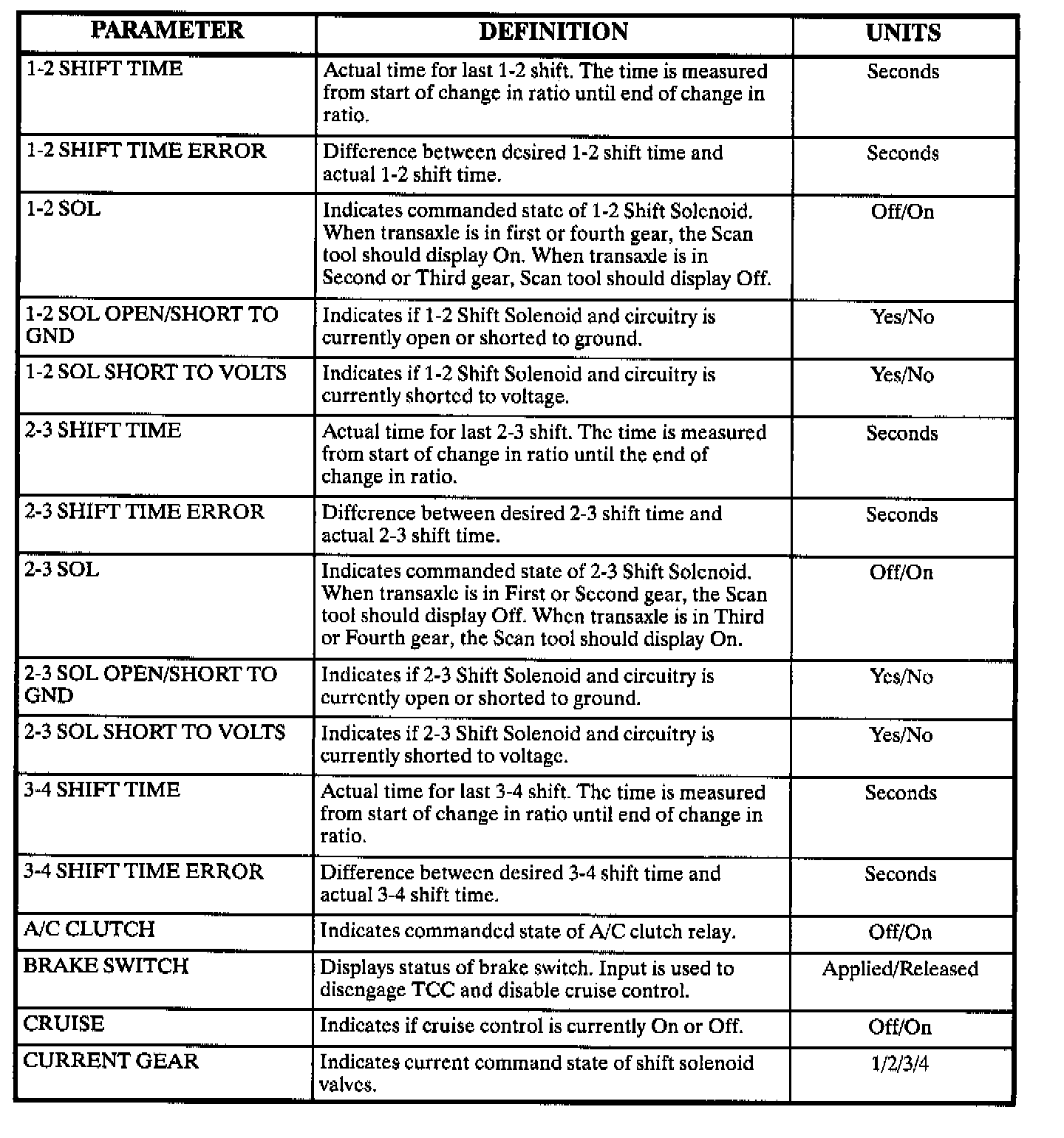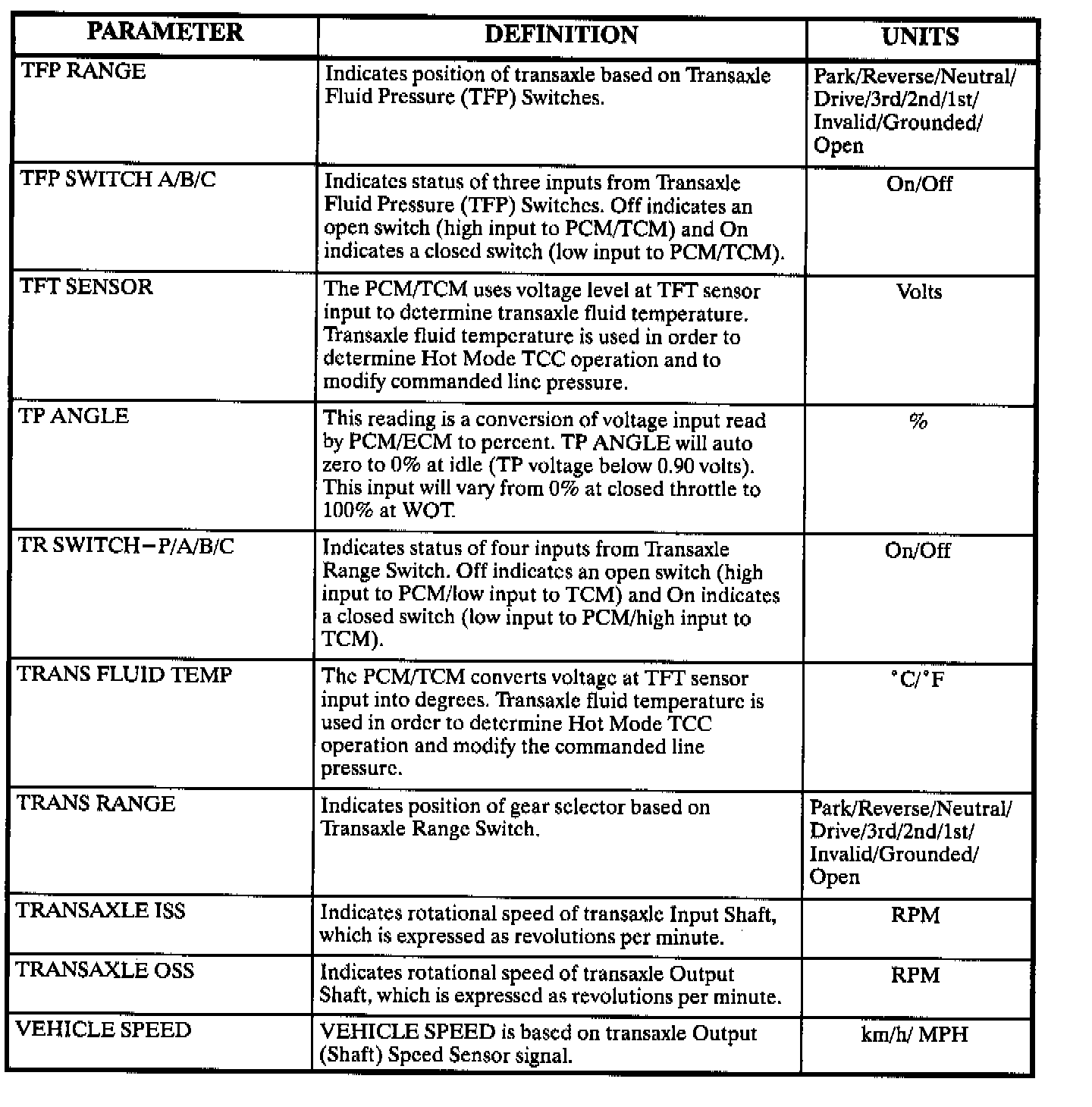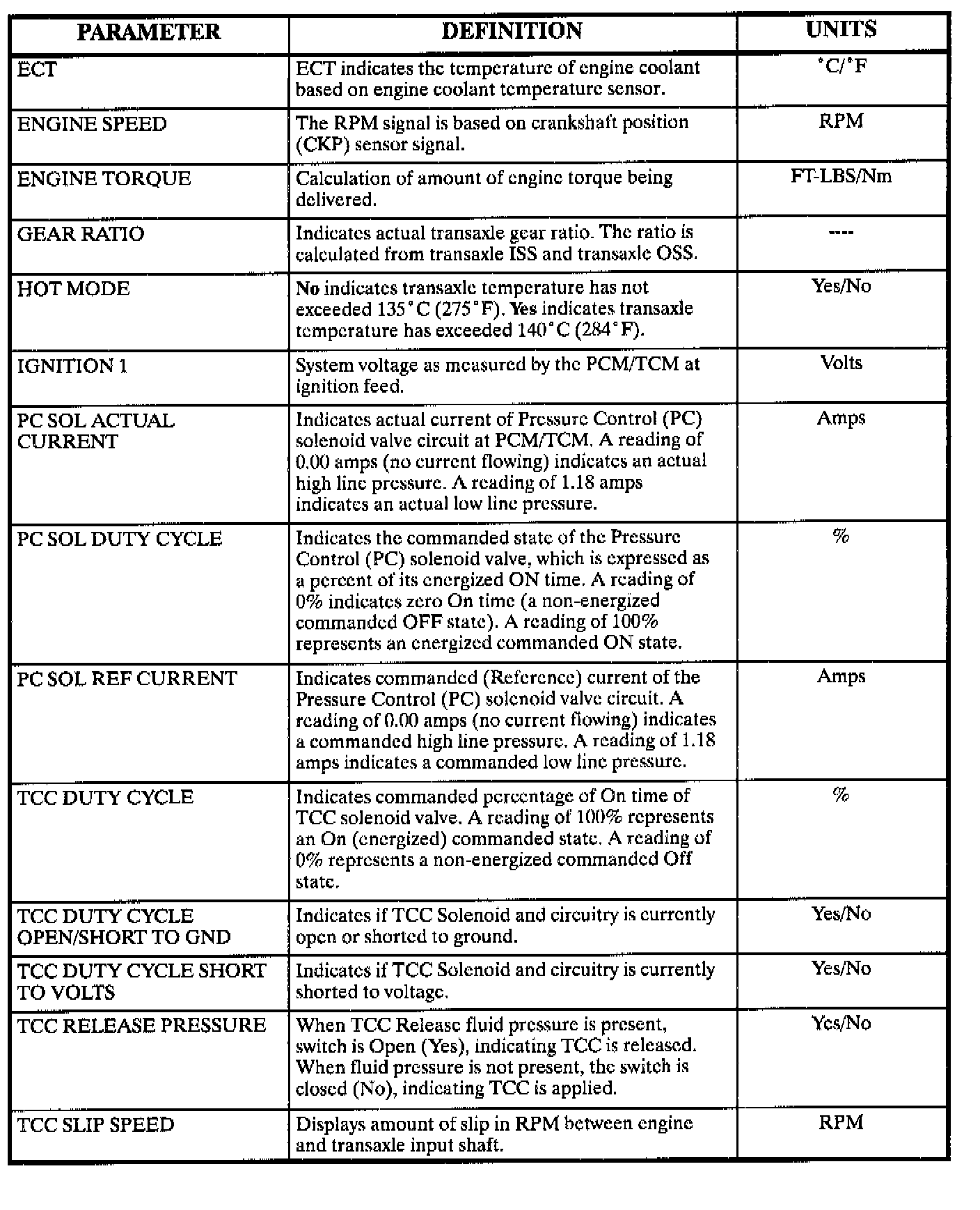 Scan Tool Parameter Chart