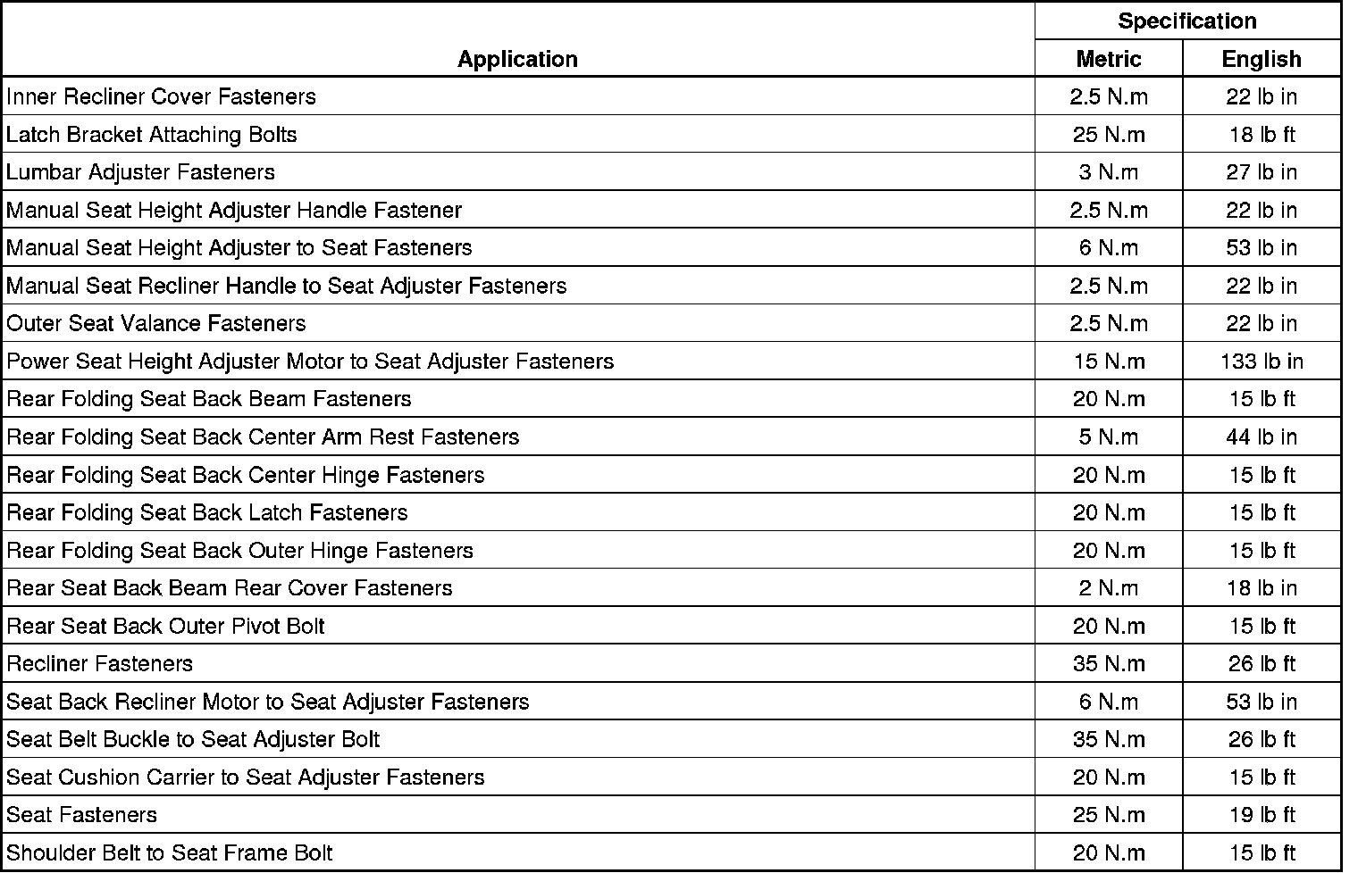 Fastener Tightening Specifications