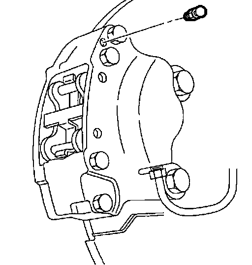 5. Remove bleeder valve and bleeder valve cap from caliper assembly.