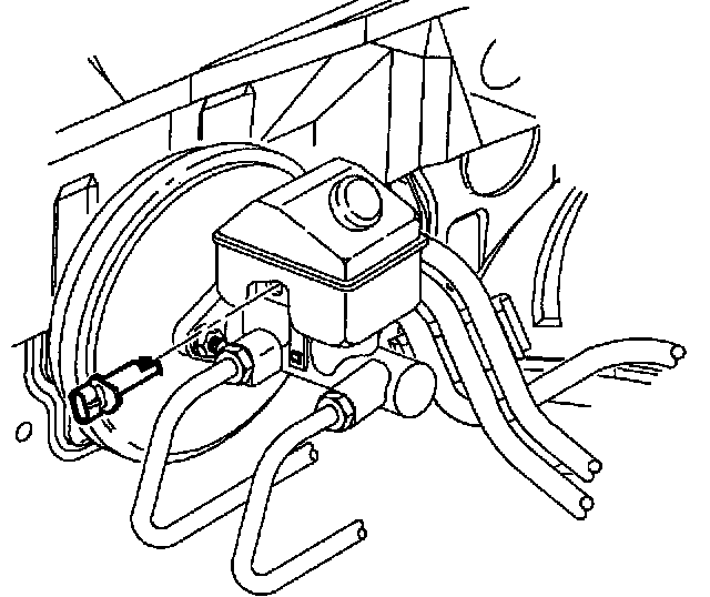 2. Remove brake fluid level switch by squeezing in tabs on opposite end of switch and pulling outward.