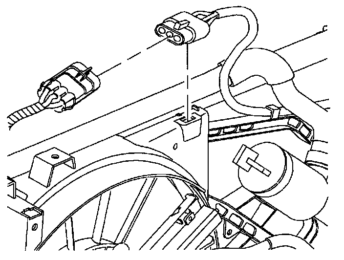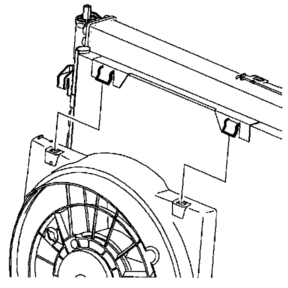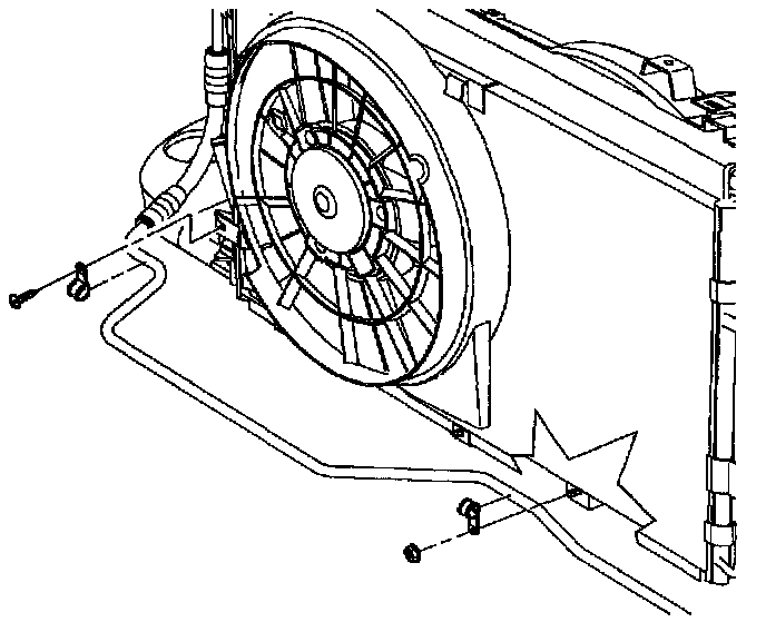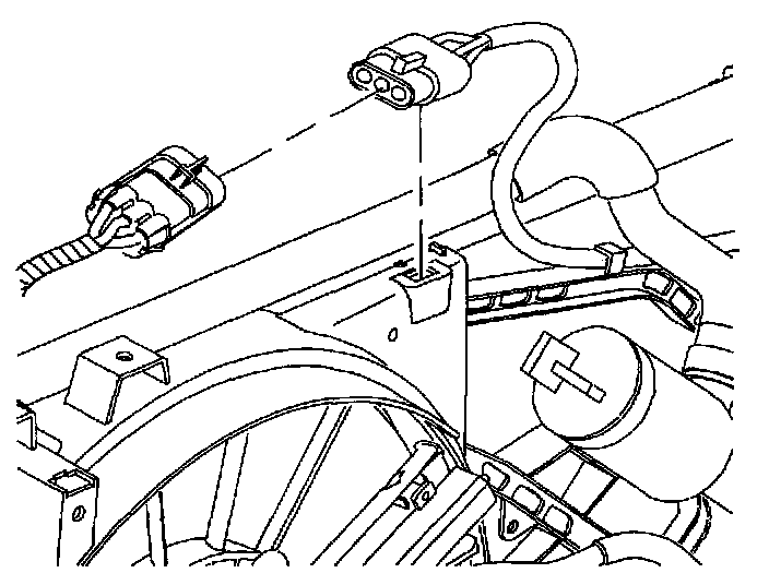 4. Remove pusher fan harness from puller fan shroud tabs and push harness clear of radiator end tank.
