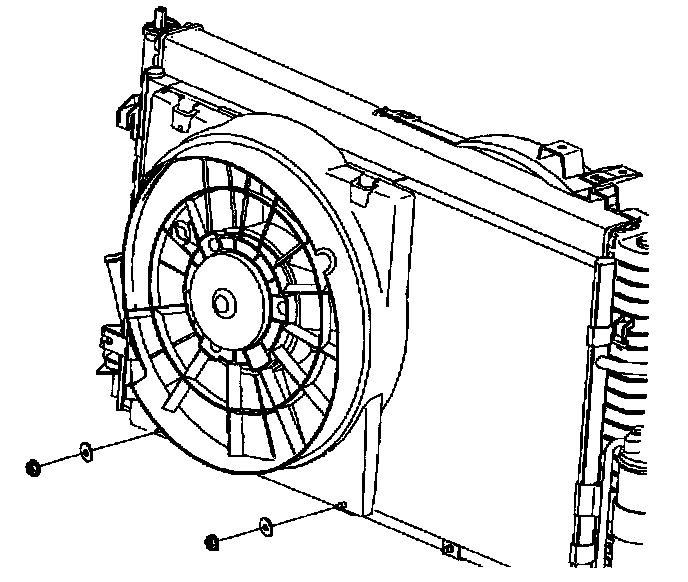 17. Rotate lower fan shroud onto lower mounting studs and install retaining nuts.