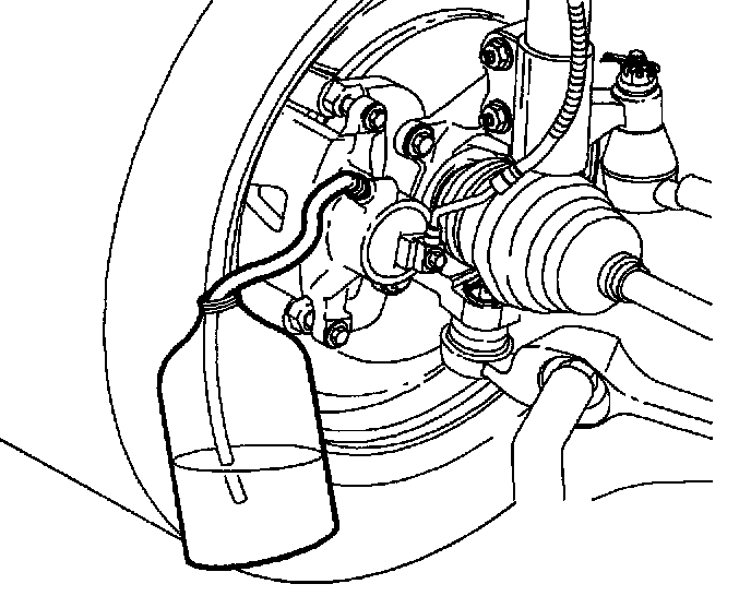 c. Loosen bleeder screw, allow fluid to flow into container until all air is removed.