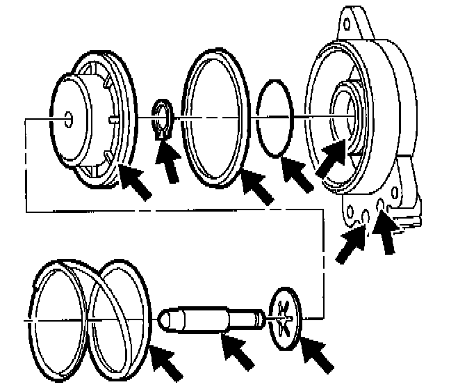 5. Discard servo piston seals. Do not reuse servo piston seals.