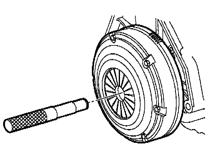 4. Install clutch alignment arbor J43482 in clutch disc and push in until it bottoms out in crankshaft.