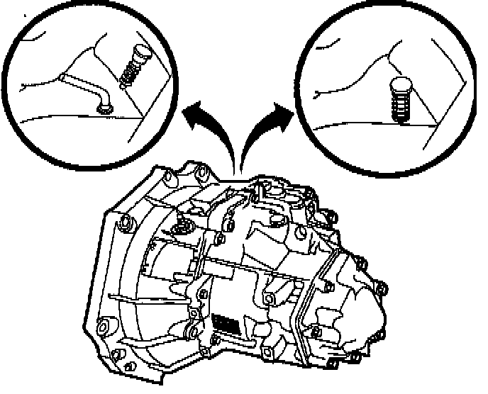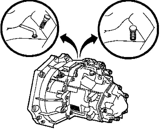 4. Lock transaxle shift control shaft in 5th/Reverse gate. There is a hole on top of transaxle that will have either a spring loaded locking pin or a hole plug.