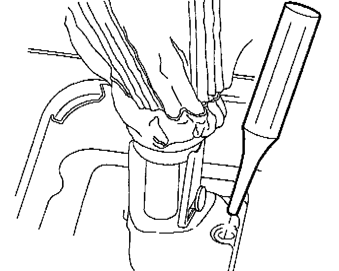 - If hole has a plug in it, remove plug and insert linkage lock pin 8792335 in hole to lock transaxle shift control shaft in 5th/Reverse gate. (If plug is not damaged, it can be reused.)