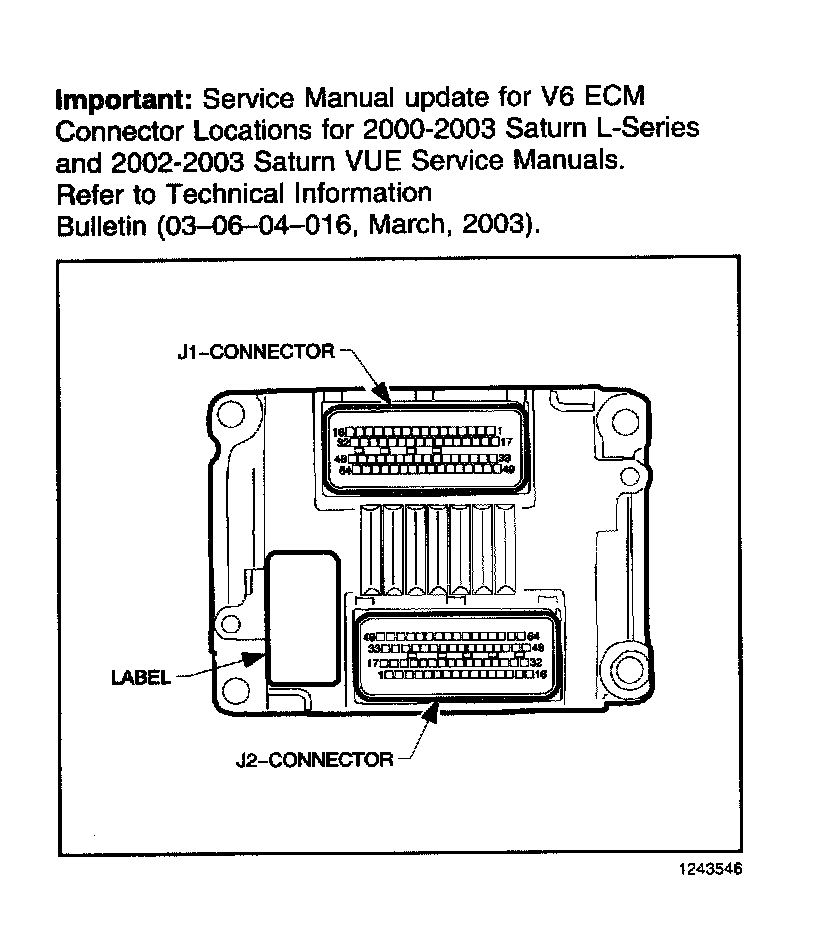 The purpose of this bulletin is to provide ECM connector locations for the J1 and J2 connectors.