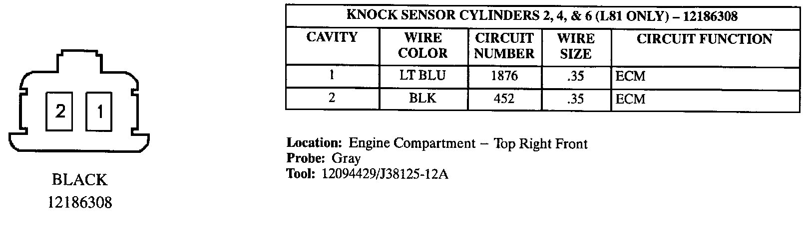 Knock Sensor Cylinders 2, 4, & 6: