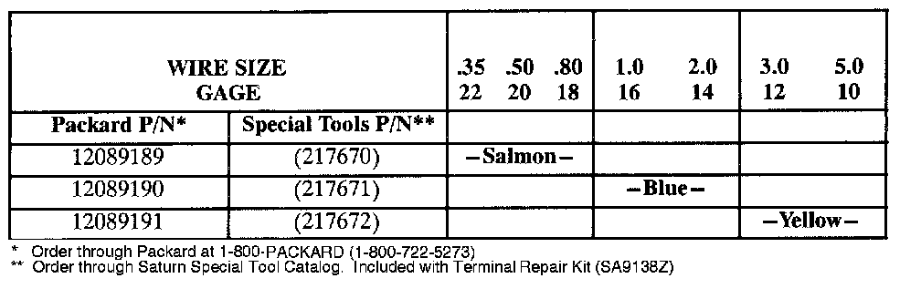 With wiring used in Saturn vehicles, it is recommended that approved Packard Crimp and Seal Splice Sleeves (or equivalent) be used.
