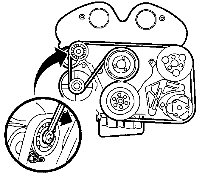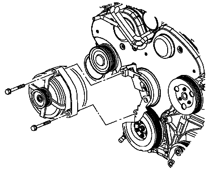 3. Remove two belt tensioner to engine block bolts and tensioner.