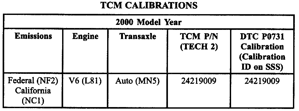 ^ If DTC P0731 calibration is installed, it is not necessary to perform the update. If a trouble code exists (Refer to "Diagnostic Information" in the 2000 Automatic Transaxle Service Manual.)