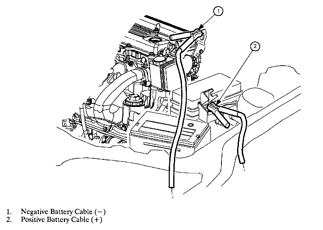 CAUTION: ALWAYS REMOVE THE NEGATIVE JUMPER CABLE FROM THE ENGINE LIFT HOOK FIRST TO AVOID SPARKS NEAR THE BATTERY. SPARKS COULD EXPLODE THE BATTERY CAUSING SERIOUS PERSONAL INJURY.