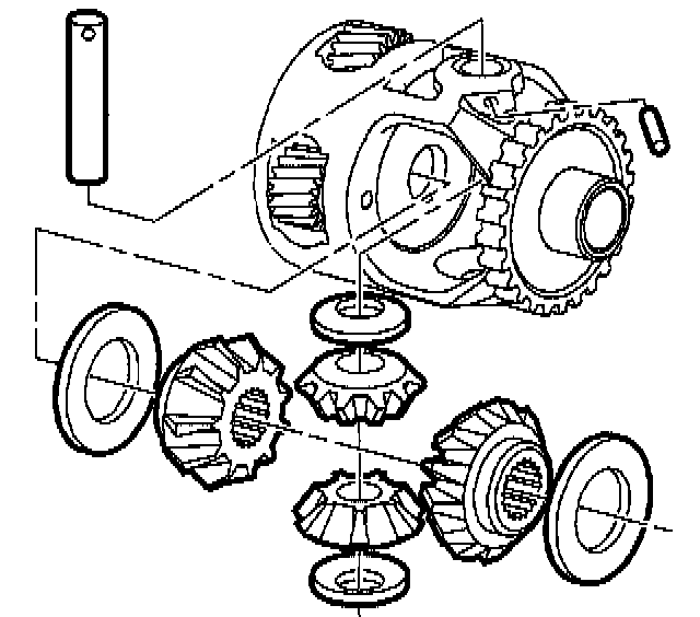 6. Remove differential pinion gears and thrust washers.