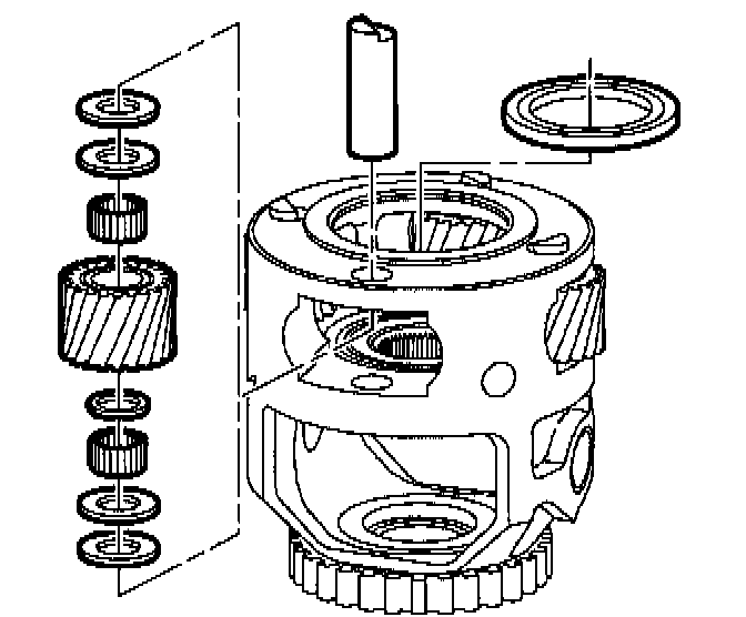 IMPORTANT: If pinion gears are removed, place final drive carrier into a clean transaxle oil pan in order to prevent losing needle bearings.