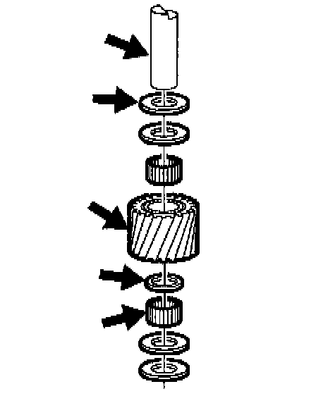 15. Inspect needle bearings, thrust washers, pinion gears, and planet pinion pins for excessive wear. Polishing is a normal condition for the pinion pins and needle bearings.