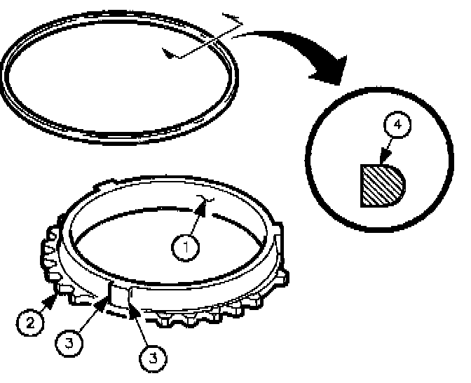 3. Inspect the synchronizer blocker ring lugs (3) for excessive wear.