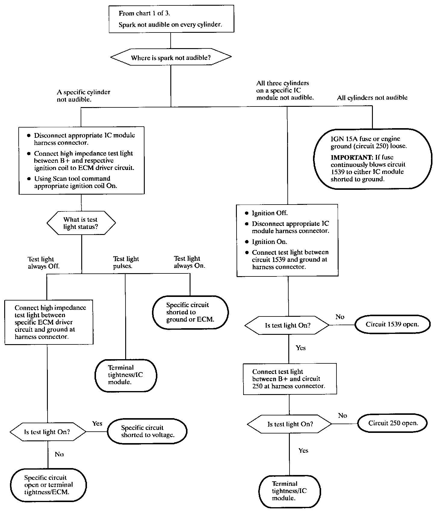 2. Spark on one cylinder in each IC module indicates that power and ground are ok to that module.