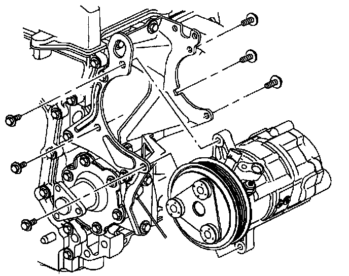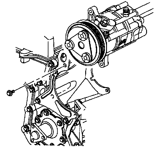 11. Remove front A/C compressor-to-engine bracket bolts.