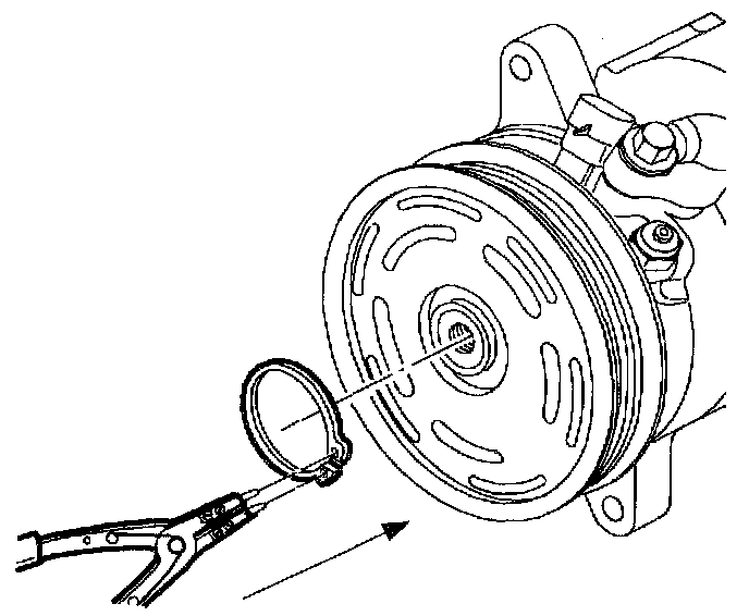IMPORTANT: Be careful not to lose shims inside of clutch drive plate opening when removing drive plate from compressor shaft.