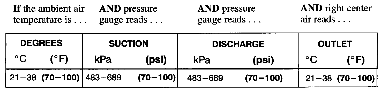 KEY: NO CHANGE IN SUCTION AND DISCHARGE PRESSURES WITH COMPRESSOR ENGAGED. GAUGE PRESSURES WILL BE ALMOST EQUAL.