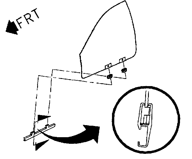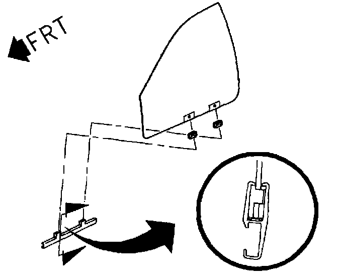 4. Lower window to access window insulator (slide clip) retention tabs. If regulator has failed in the full up position, lower window and regulator as an assembly.