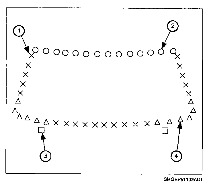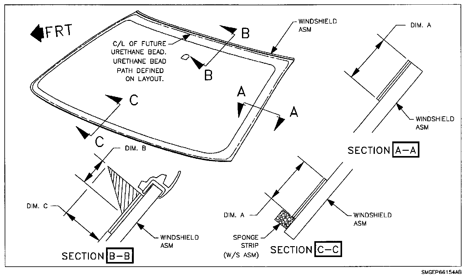 4. Apply a smooth continuous bead of adhesive directly to old urethane adhesive in glass opening or to glass. Apply according to dimensions shown.