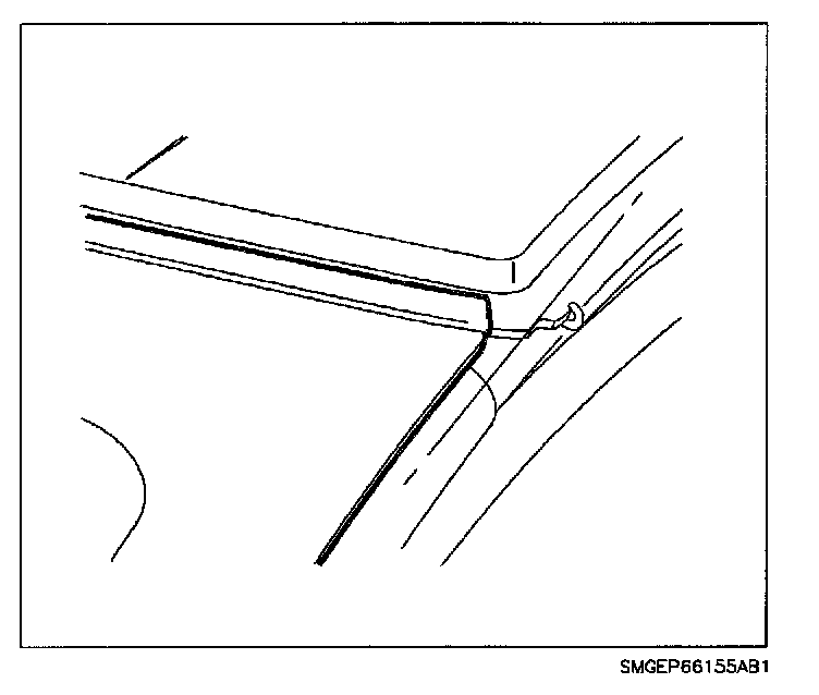 NOTE: Until the new urethane has cured, air pressure from a closing door may cause the windshield to move. To prevent this, lower the rear seat and open the decklid before closing the door.