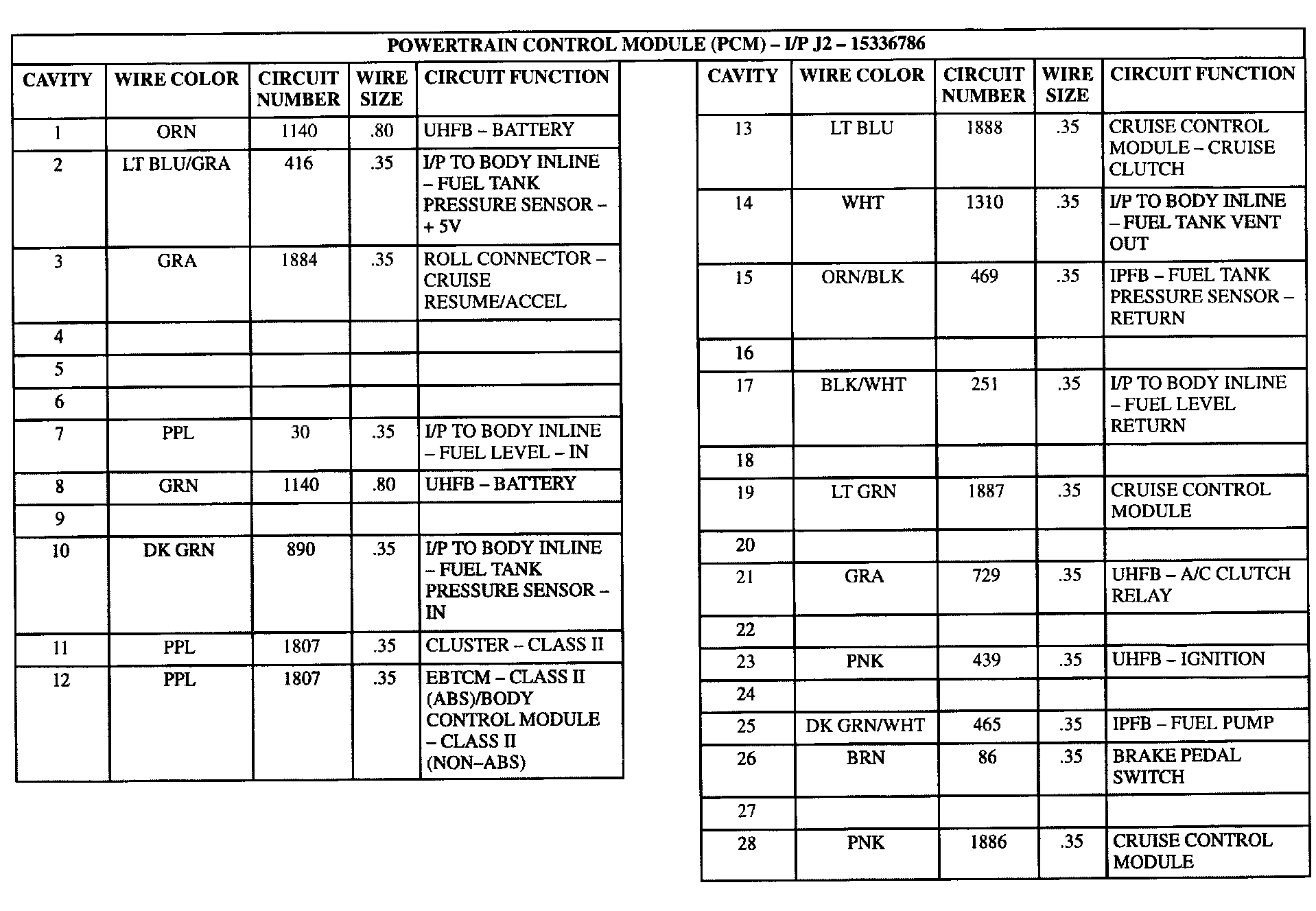 Powertrain Control Module (PCM) - I/P J2 (Part 1 Of 2):