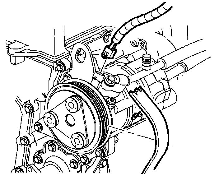 10. Remove accessory drive belt from compressor clutch pulley by rotating belt tensioner clockwise using a 14 mm or 9/16 in. wrench. Snap-On(TM) tool S8190A (or equivalent) can be used.