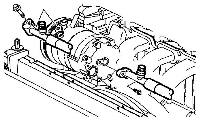 12. Disconnect suction and discharge hoses at compressor.