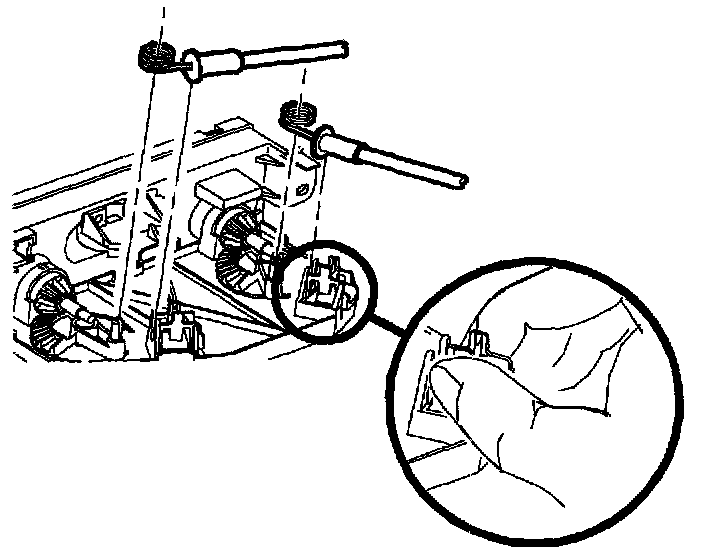 d. Remove temperature cable by squeezing lock tabs together while pulling cable (coiled end) straight up beyond retaining tabs.