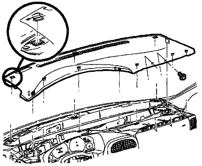 c. Align tabs on sides of upper trim panel with openings in windshield garnish molding.