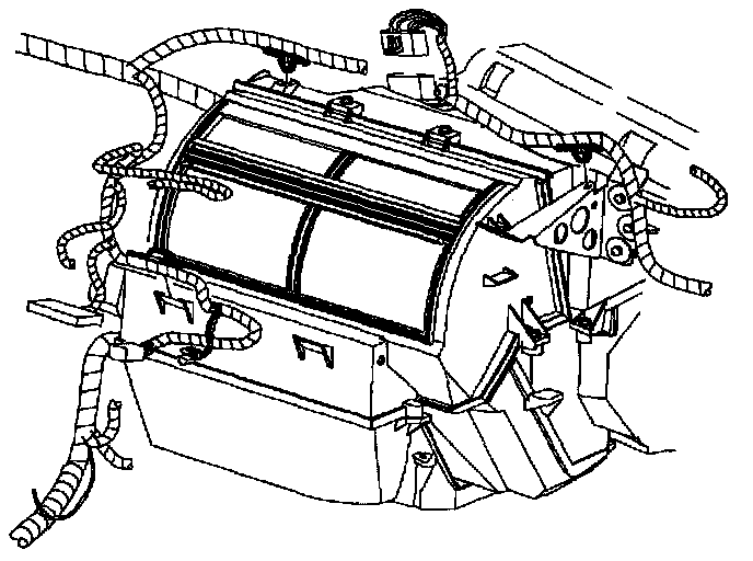 2. Install HVAC module through the cowl. Install screws and nuts.