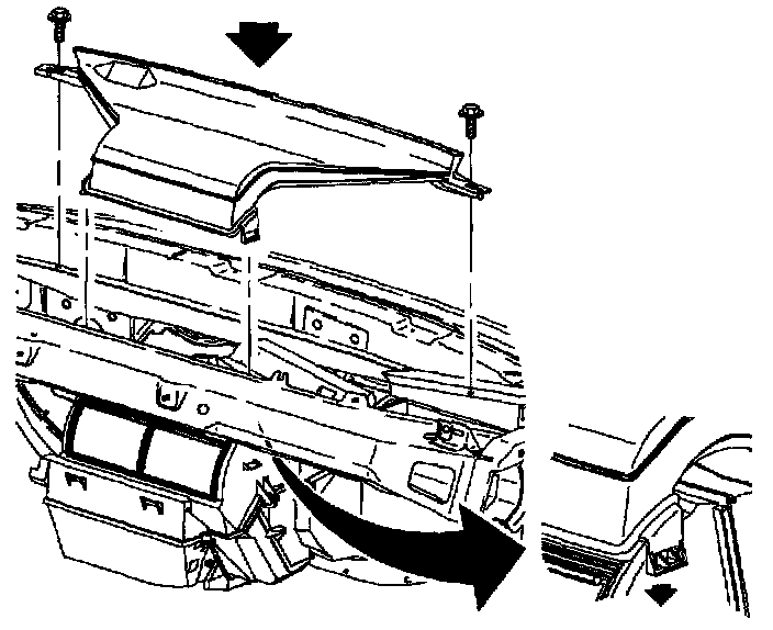 9. Install center air outlet duct and screws.