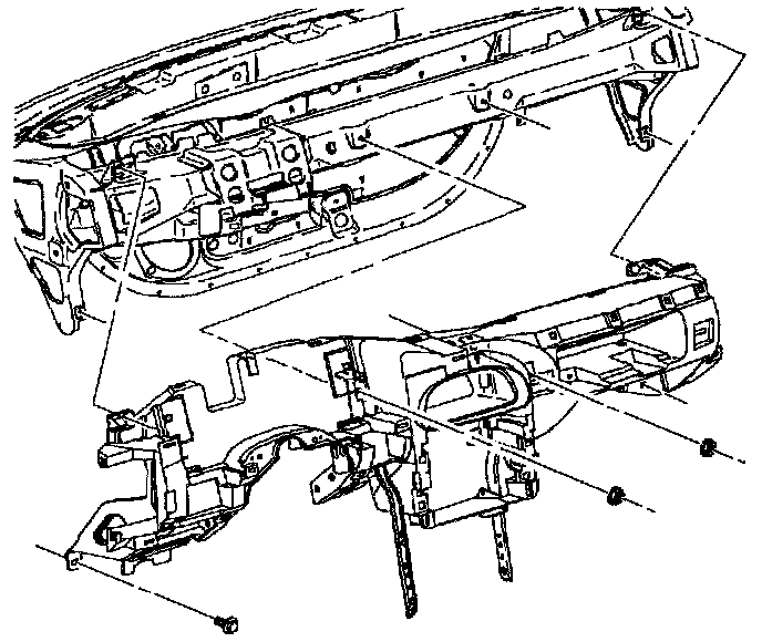 13. Install I/P retainer assembly to dash panel assembly bolts and nuts, do not torque bolts and nuts.
