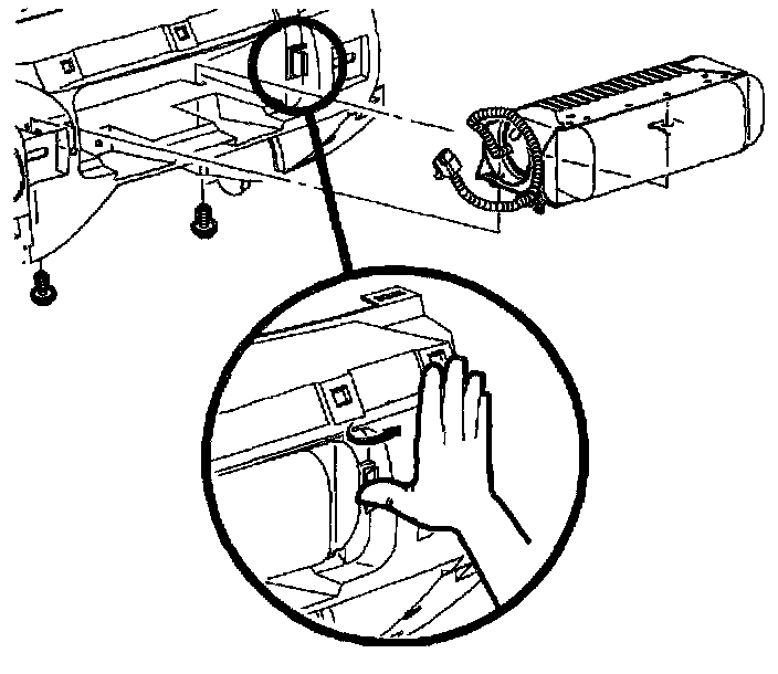 21. Install inflator module ensuring the retaining tabs are engaged to the I/P reinforcement assembly.